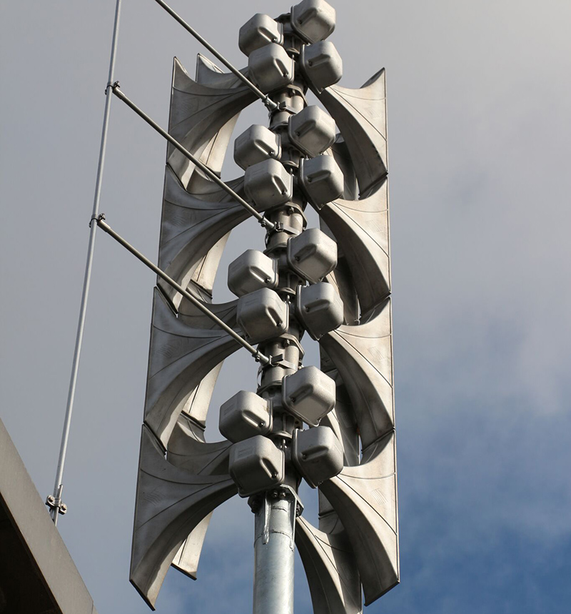 Sirenen erzeugen verschiedene Warntöne. Das Sirenenwarnsystem in der Alfelder Innenstadt ist zudem in der Lage, die Bevölkerung mittels Sprachdurchsagen zu warnen.
