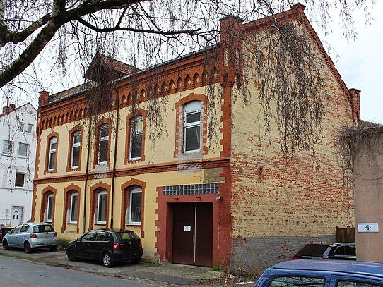 Der Brauereikomplex der Schanzkellerbrauerei wurde 1869 errichtet und reicht vom ehemaligen Stadtbefestigungsgraben über die Wallstraße hinweg bis hier zur Holzer Straße. 1884 ging die Brauerei in den Besitz von Henry Fricke über. Das große Brauhaus wurde 1888 gebaut und 1890 auf Dampfbetrieb umgestellt. 1906 wandelte man die Brauerei in eine Aktiengesellschaft um. Im Februar 1912 brannte ein großer Teil des Betriebsgebäudes ab. Die Hauptanlagen blieben aber erhalten, so dass der damals florierende Betrieb alle vorliegenden Bierbestellungen abarbeiten konnte.