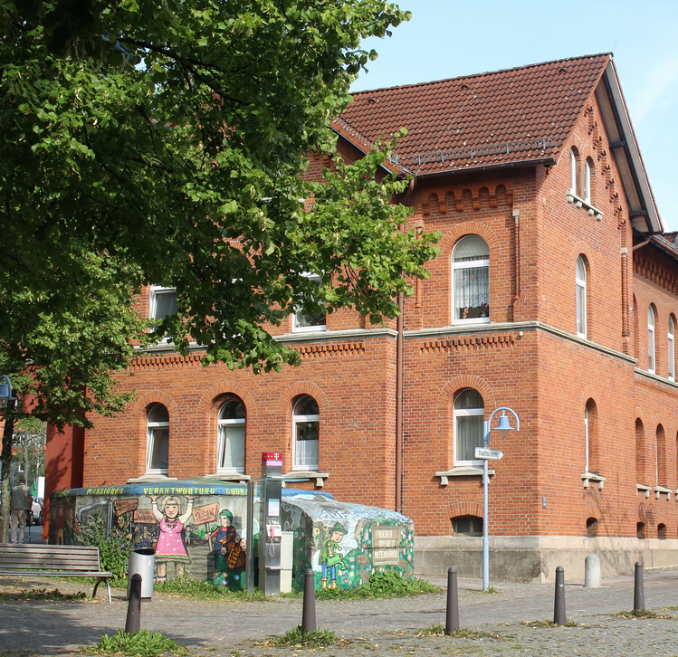 Das in rotem Backstein im sogenannten Rundbogenstil erbaute Gebäude geht auf Pläne des weithin bekannten hannoverschen Architekten Conrad Wilhelm Hase zurück, auf den sich auch die St. Annen Kirche in Meimerhausen sowie der mittlerweile abgerissene Bahnhof aus dem Jahre 1857 zurückführen lassen. Gemäß seiner provokanten These „Putz ist Lüge“ setzte er allein auf die ästhetische Wirkung des Backsteins und begründete damit eine eigene Architekturrichtung, die „Hannoversche Schule“.