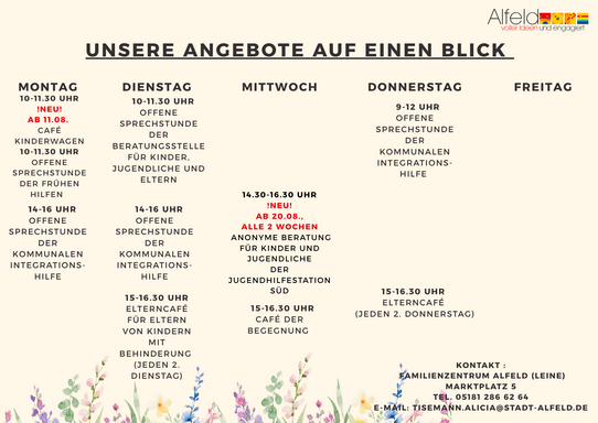 Wann? Jeden Montag und Dienstag von 14.00-16.00 Uhr und donnerstags von 9.00-12.00 Uhr