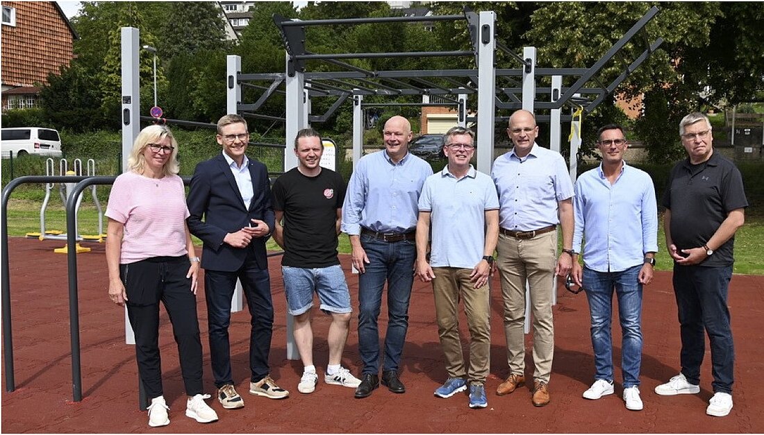 Dank der Initiative von Thomas Warnecke und Dennis Scholz von der SV Alfeld konnte diese frei zugängliche und inklusionsgerechte Fitnessanlage am 13.08.2023 der Öffentlichkeit zur Stärkung der Bauch-, Bein-, Rücken- und Schultermuskulatur zur Verfügung gestellt werden.
