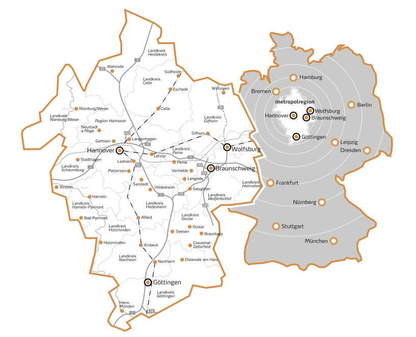 Die Stadt Alfeld ist Teil der Metropolregion Hannover Braunschweig Göttingen Wolfsburg, einem rund 4-Millionen-Einwohner-Gebiet von europäischer Bedeutung. Geprägt von wirtschaftlicher Stärke, einer exzellenten Wissenschaftslandschaft und der Lage an wichtigen Verkehrsachsen, fördert die Metropolregion die Zusammenarbeit von Kommunen, Wirtschaft, Wissenschaft und dem Land Niedersachsen.
